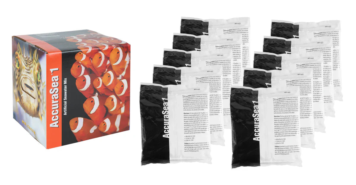 The Two Little Fishies AccuraSea1 Synthetic Sea Salt Mix is formulated to replicate the chemistry of natural seawater with high precision. Each package is pre-measured to make up to 50 gallons of seawater at a specific gravity of 1.026. This salt mix provides balanced levels of calcium, magnesium, alkalinity, potassium, and trace elements, making it ideal for reef and marine aquariums. It dissolves quickly, leaves no residue, and is phosphate and nitrate free.